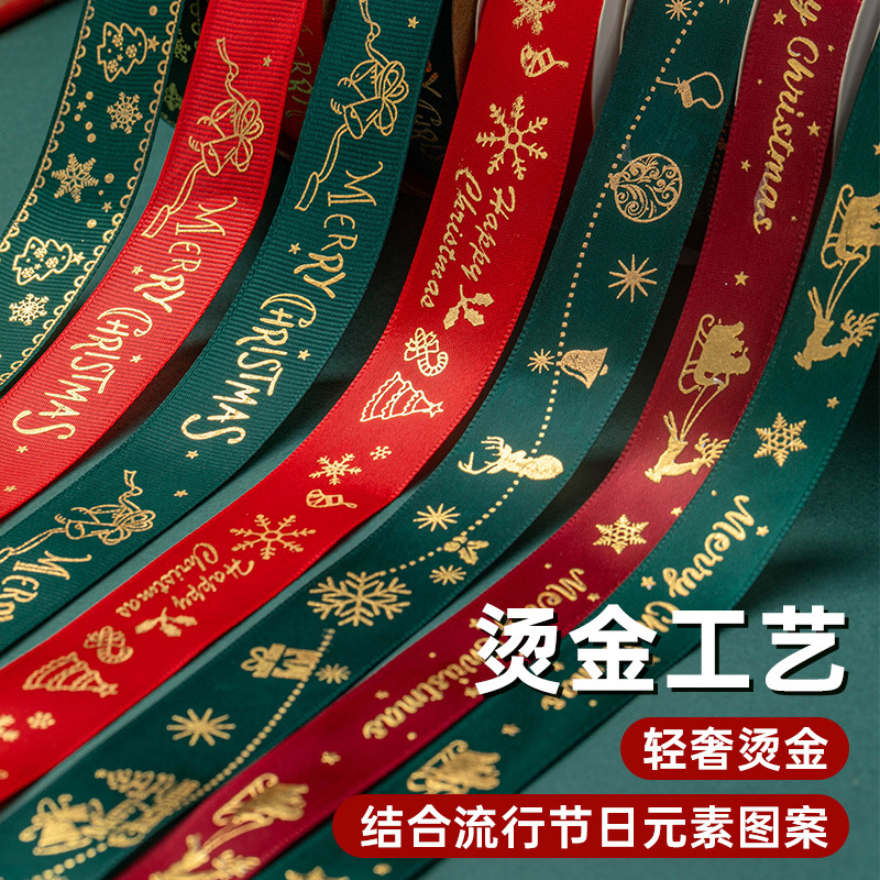 ริบบิ้นซาตินโทนสีเขียวแดง พิมพ์ลายคมชัด