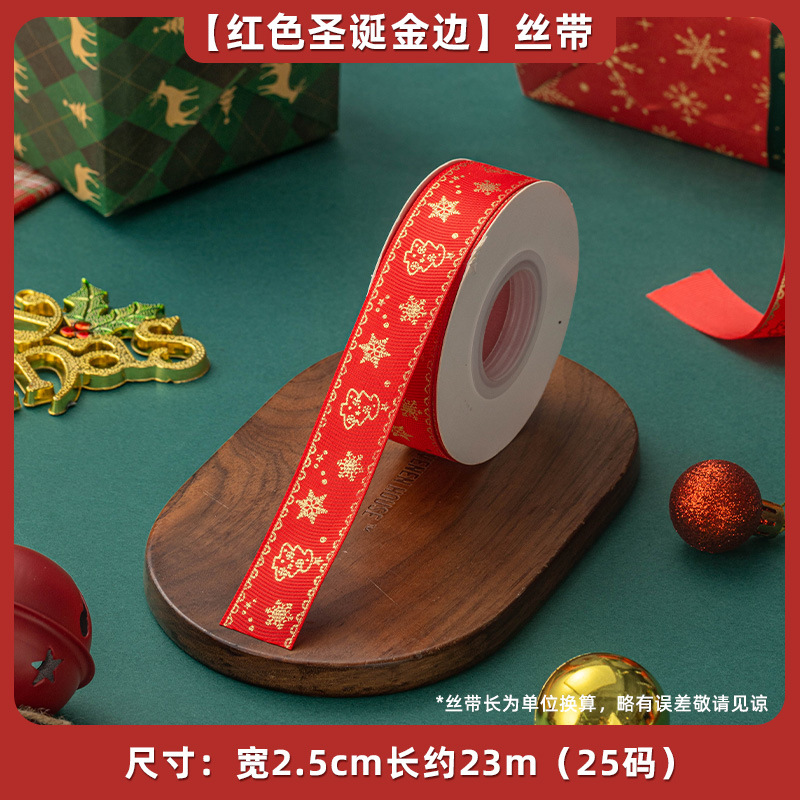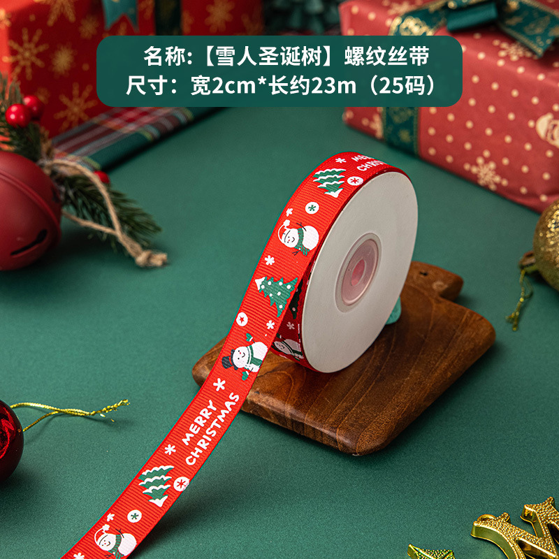 ริบบิ้นผ้าลายธีมคริสต์มาส Merry Chrismas กว้าง 2 cm (ยาว 25 หลา)