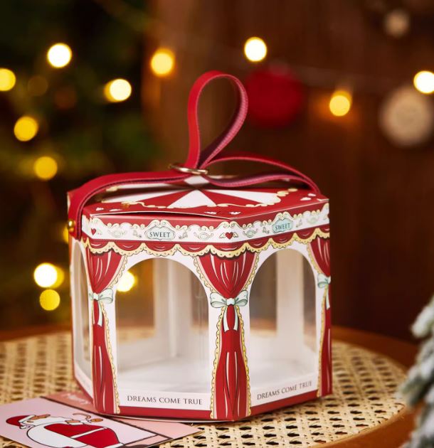 กล่องใส่ขนมทรงม้าหมุน Go - around ลายคริสมาสต์ Premium Christmas box (แพค 5 ใบ).